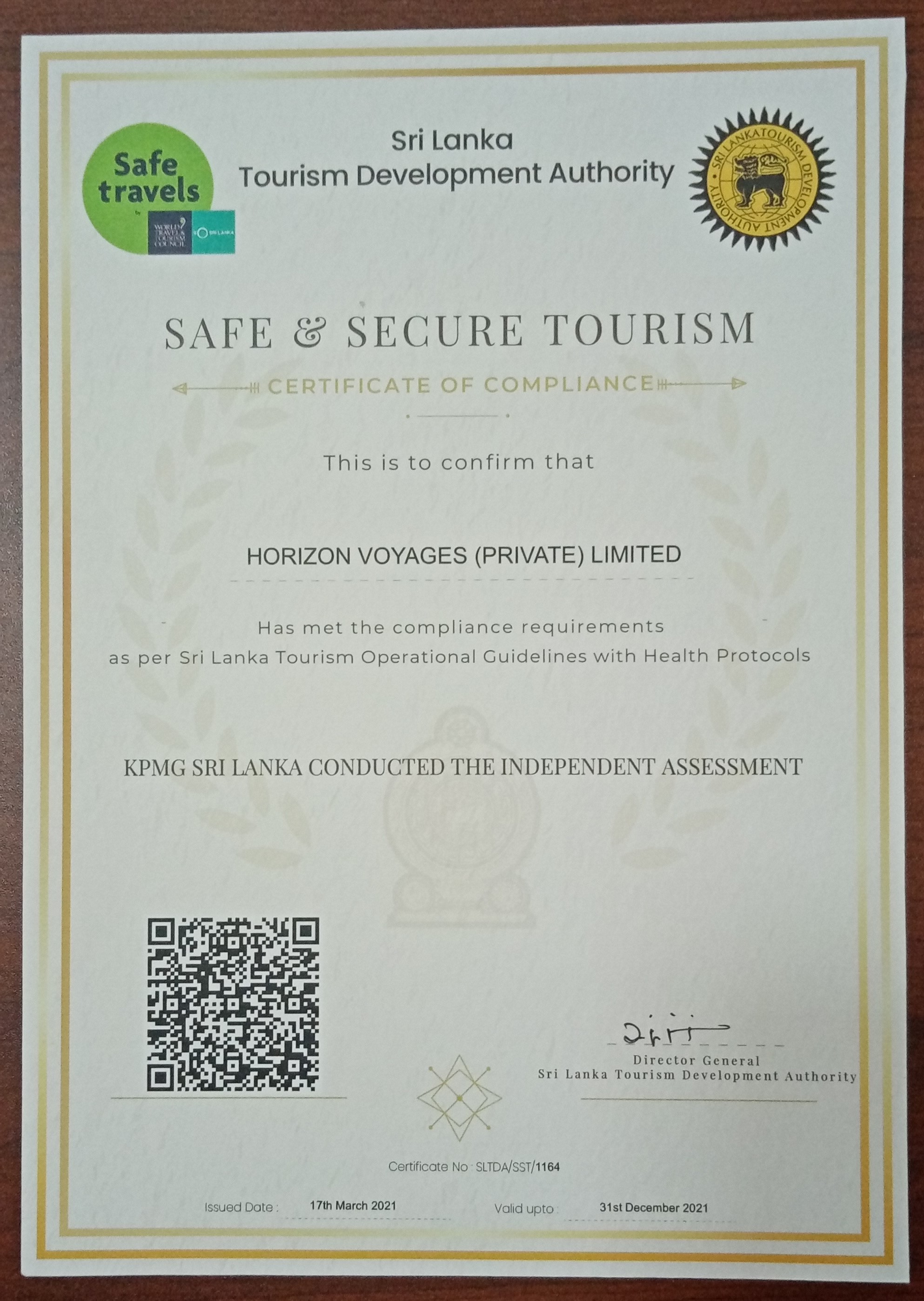 Notre compagnie principale est qualifiée et approuvée certifiant sur la catégorie ‘Safe & Secure’ par l’office de tourisme au Sri Lanka d’accepter les réservations de voyageurs étrangers. Nous avons obtenu l’autorisation à rendre les services aux voyageurs en bonne sécurité pendant cette pandémie globale.